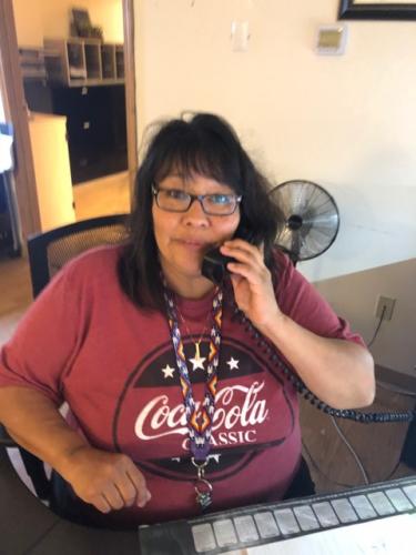 Boozhoo my name is Mary BigGeorge and I am the Anishinaabeg of Naongashiing Community Care Program Secretary, some of my duties include greet the public in a friendly manner & direct to the proper department with the confidence of keeping confidentiality for all matters. Field calls on behalf of the team as requested, assessing and prioritizing urgency calls, referring them to the appropriate staff member & notify the CCP Supervisor. Record in-coming mail, faxes & distribute to the CCP staff. Organize the CCP van schedule, monthly on-call schedule. Responsible for all financial submissions and making sure staff receive travel, reimbursements and any other submissions. Offer the community coffee, tea while they are visiting awaiting to see one of the CCP staff.